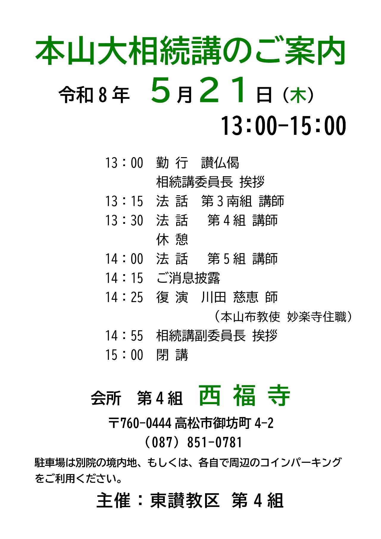 本山大相続講のご案内