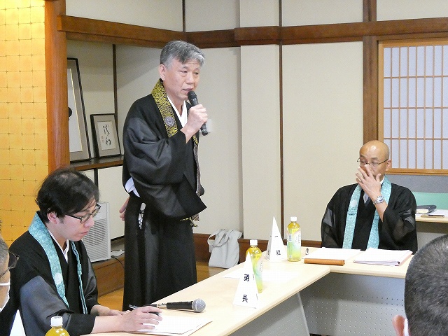 次に令和6年度会計収支決算が報告され、質疑応答が行われる中、会計説明員として同席を頂いた松永公明氏(綾北組 宝蓮寺)より決算上の注意点が述べられました。その後、採決が行われ、全会一致で承認されました。続いて三宅良憲会計監査委員から監査結果の報告が行われました。