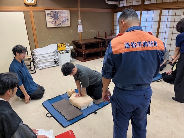 お招きしての AED 研修会が開催されました。この度は、目の前に倒れている人がいたら、